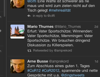 Ich nenne diese Äußerungen die Vorwärtsverteidigungstweets. Was heißt das? Sobald irgendein verirrter Jugendlicher eine Knarre in die Hand nimmt und in der Schule damit herumfuchtelt oder vielleicht sogar -ballert, kommt sowas. Es bloggt und twittert dann irgendein Schlauberger, dass bald garantiert der Anwurf komme: