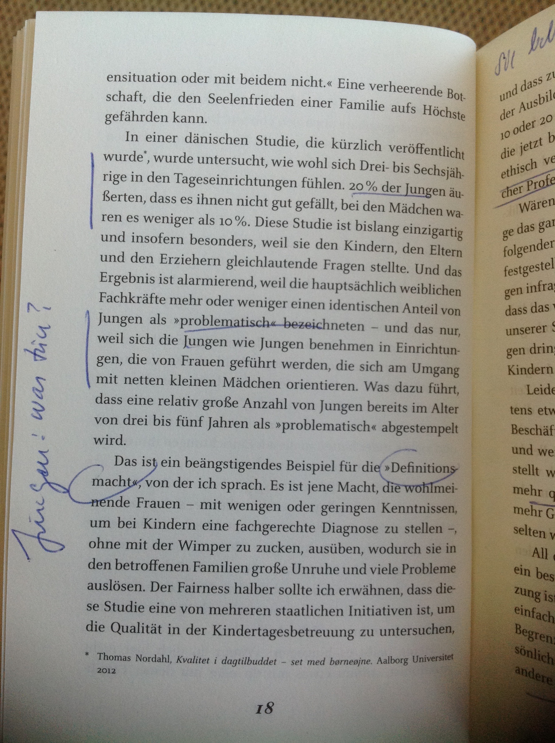 Das sind mE die spannendsten Textstellen im Essay von Jesper Juul, siehe meine Tweets dazu: Jungen benachteiligt. Und: Perspektivwechsel.