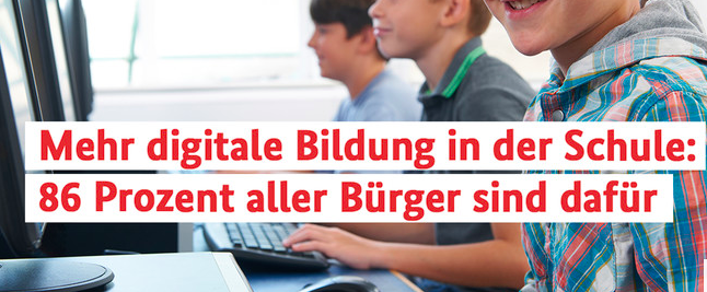 Das Bildungsministerium des Bundes ließ eine repräsentative Umfrage zu digitalem Lernen anfertigen. Das Ergebnis wird dann so dargestellt: 86 Prozent der Bürger wollten „den Umgang mit digitalen Technologien auch in der Schul- und Berufsbildung verankern“, zwei Drittel sähen eher Chancen als Risiken und 72 Prozent dächten, dass die Gesellschaft so innovationsfähiger werde.