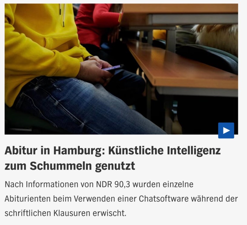 Zwei Monate später fand Hamburg nun genau das statt, was zu erwarten war. Schüler schrieben ihr Abitur mit KI. Das ist zwar aus der Sicht der Schüler vollkommen vernünftig – aber nach den offiziellen Spielregeln ist es Betrug.
