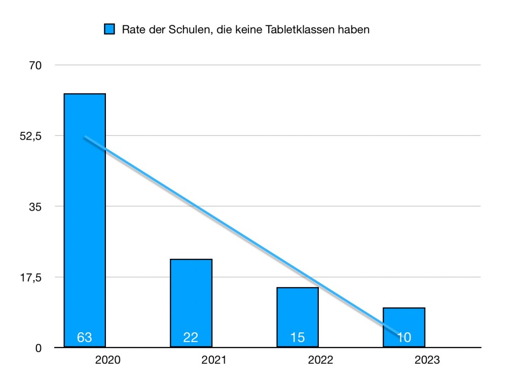 Im Jahr 2023 war nur noch jede zehnte Schule ohne Klassensätze digitaler Endgeräte. Dahinter kann eigentlich niemand zurück.